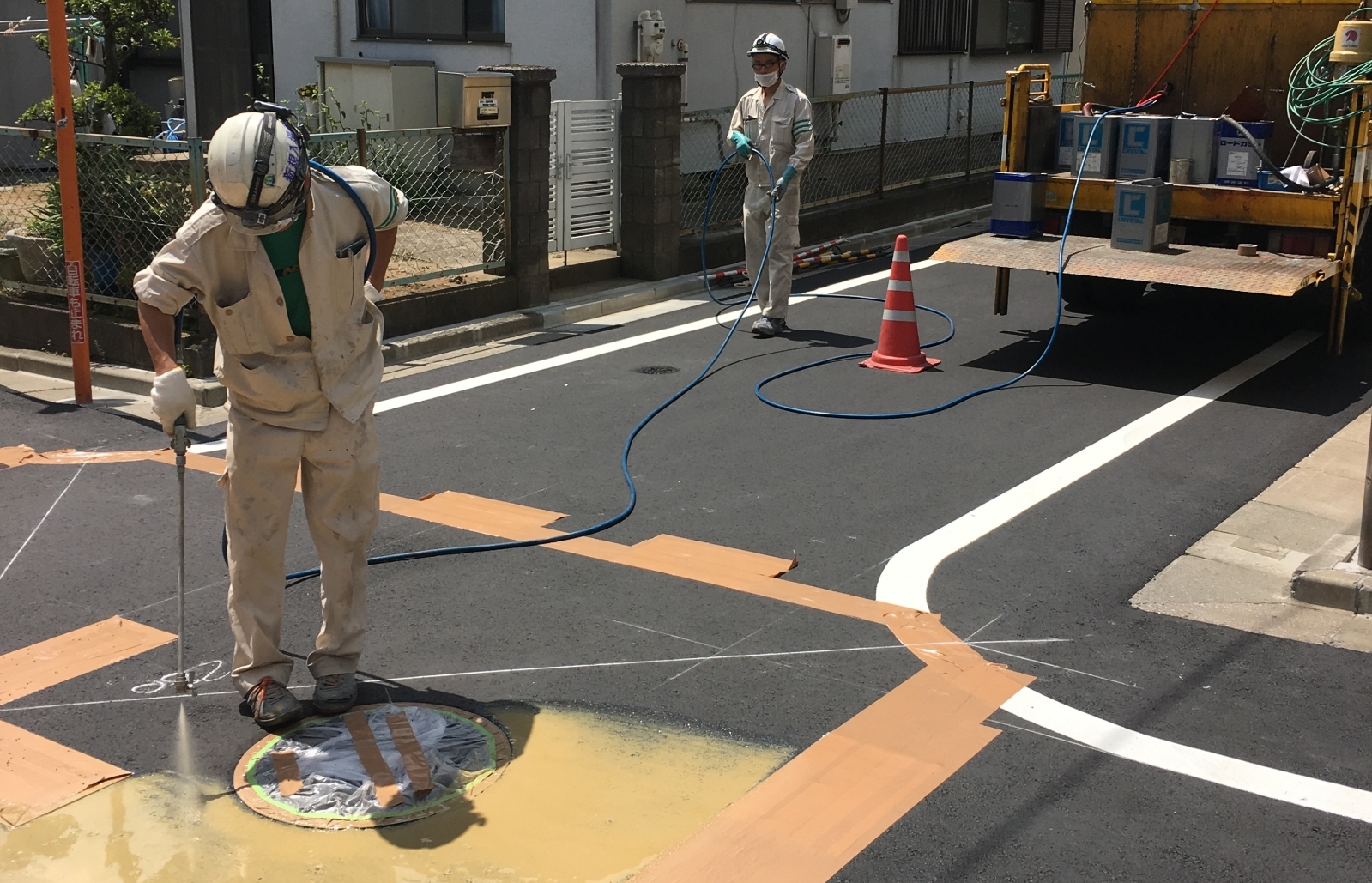 道路上に「止まれ」「横断歩道」などの白線を引く工事です。車や歩行者の安心・安全を守るために、正確さと高い技術力が求められます。当社は熟練の職人が一つひとつ丁寧に施工し、見やすく長持ちする仕上がりを実現しています。